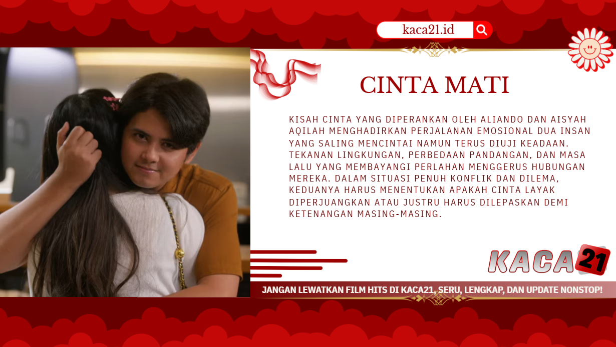 LAYARKACA21 menjadi kata yang tepat untuk membuka pembahasan film Cinta Mati, sebuah film drama romantis Indonesia yang menyuguhkan kisah cinta penuh emosi, konflik batin, dan pengorbanan. Dibintangi oleh Aliando dan Aisyah Aqilah, film ini menghadirkan romansa yang tidak hanya manis, tetapi juga menyakitkan dan realistis. Cinta Mati mengajak penonton menyelami hubungan dua anak muda yang harus mempertahankan cinta mereka di tengah tekanan lingkungan dan masalah pribadi yang terus menguji perasaan.