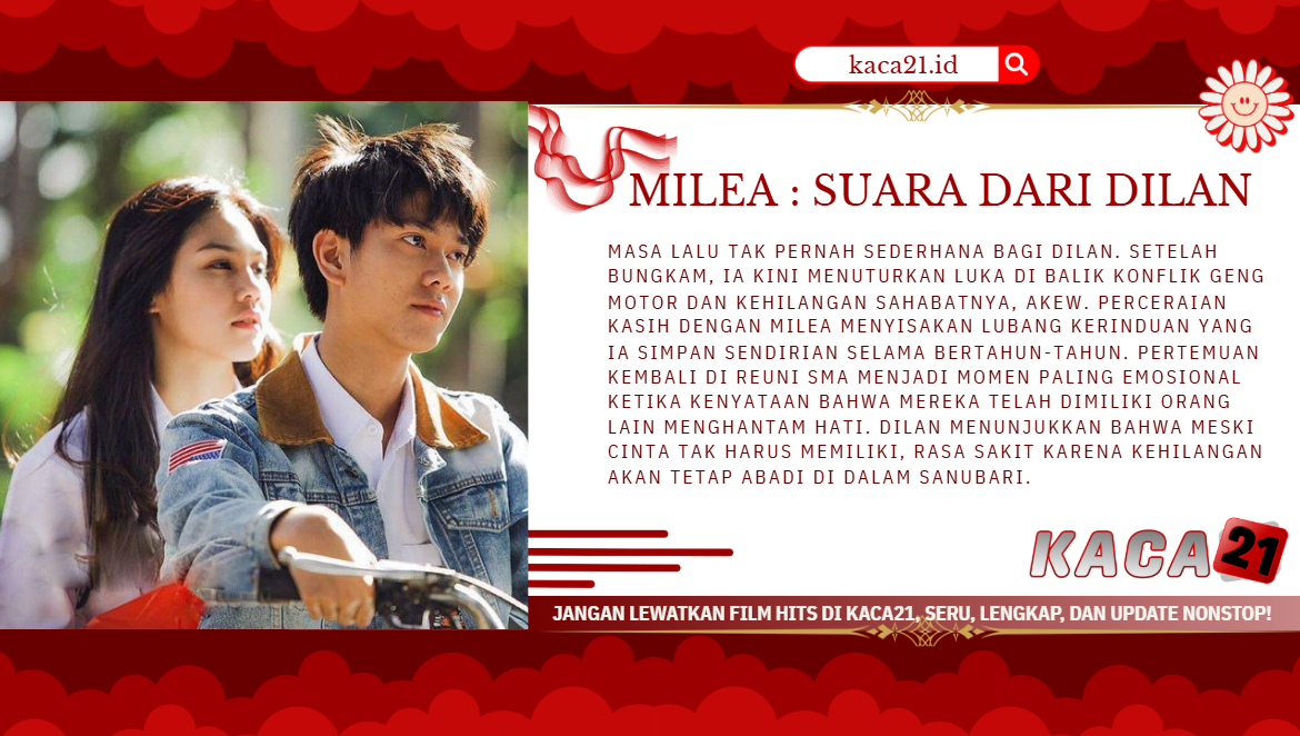 Tunggu apa lagi? Segera tonton film Milea: Suara Dari Dilan hanya di KACA21! Rasakan kualitas tontonan yang jernih dan atmosfir Bandung era 90-an yang begitu kental. Langsung meluncur ke situs ini sekarang juga, siapkan tisu, dan saksikan bagaimana sang Panglima Tempur akhirnya mengucapkan selamat tinggal pada cinta terbaiknya!
