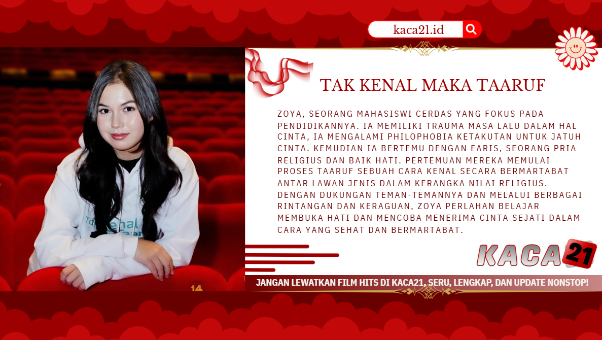 KACA21 menghadirkan kisah romantis penuh makna melalui film Tak Kenal Maka Taaruf, sebuah drama religi yang mengangkat tema cinta, kesabaran, dan keyakinan dalam menemukan pasangan hidup dengan cara yang bermartabat. Film ini menjadi pilihan sempurna bagi kamu yang merindukan kisah cinta yang hangat, menyentuh, namun tetap berpegang pada nilai-nilai keimanan.